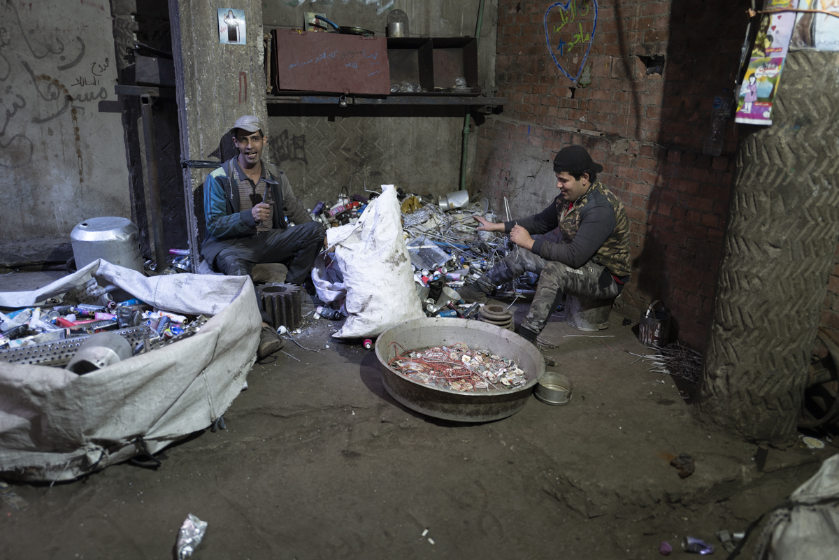 Surnommé le « métal vert », l’aluminium se recycle à l’infini, ce qui économise 95 % d’énergie et 93 % de gaz à effet de serre par rapport à la production d’aluminium neuf. Au Caire, l’aluminium est considéré comme la matière la plus rentable du recyclage : « On gagne de l’argent, mais on s’y consume aussi ».